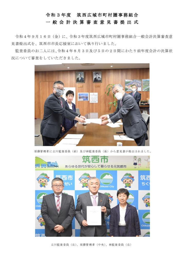 令和3年度 筑西広域市町村圏事務組合 一般会計決算審査意見書提出式
