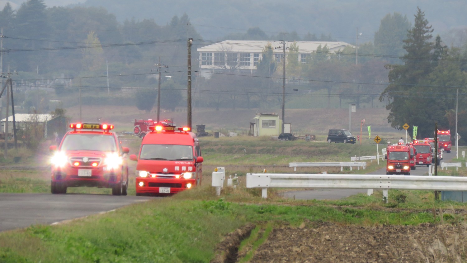 令和5年11月12日(日)桜川市池亀地内において、桜川市、桜川市消防団、茨城県防災航空隊と合同の林野火災防ぎょ訓練を実施しました。 この訓練は、林野火災の被害の軽減を図り、関係機関相互の協力体制の強化を図るとともに、消防団員、消防職員の火災防ぎょ技術の向上と効果的な部隊運用を期することを目的として行われました。