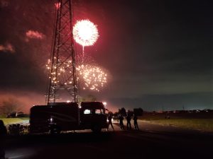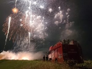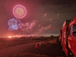 令和7年10月18日(土)ちくせい花火大会2025が開催されました。 筑西消防署では開催前から打ち上げ後まで、花火大会が安全に実施されるよう、打ち上げ場所である国道50号下館バイパス新常盤橋北小貝川河川敷近辺、及び小林地内の警戒を実施しました。