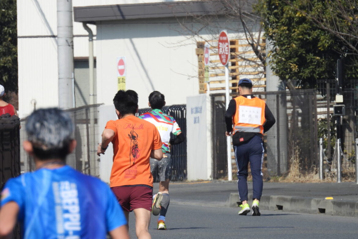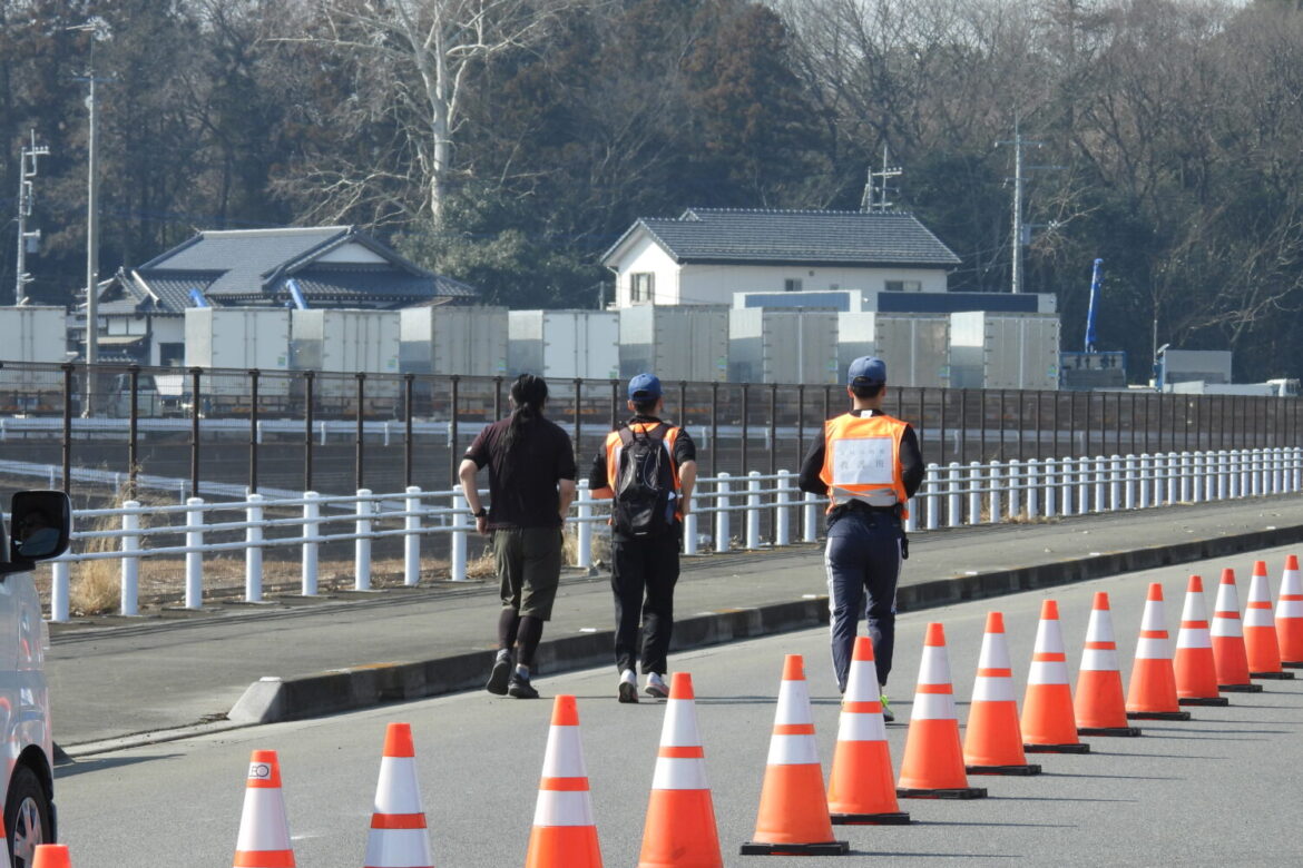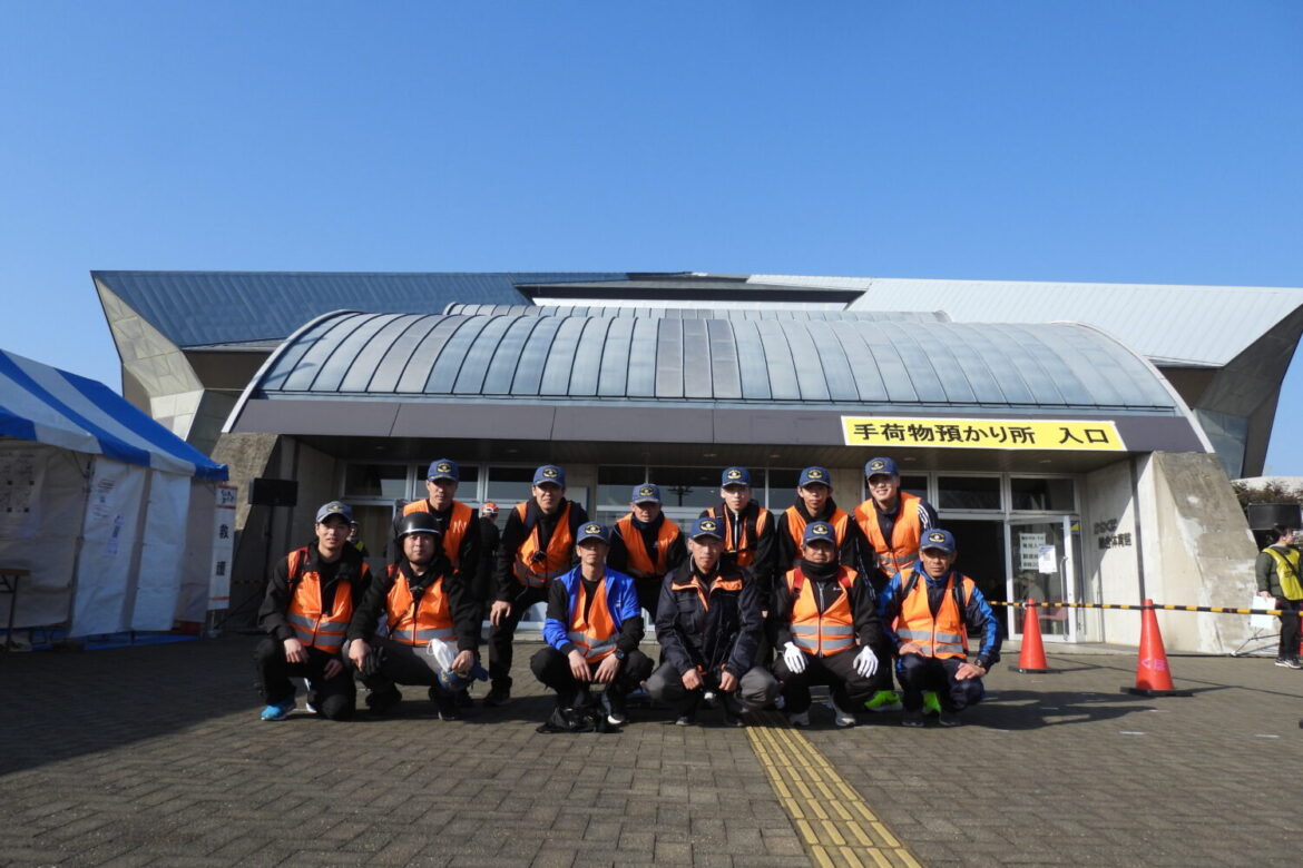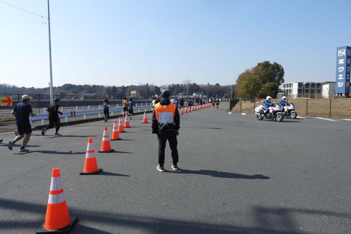 令和8年2月15日(日)結城市鹿窪地内の鹿窪運動公園付近において開催された、第26回結城シルクカップロードレース大会に、ランナーレスキューとして結城消防署12名の職員が協力しました。